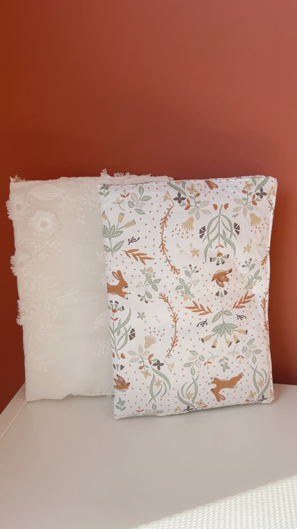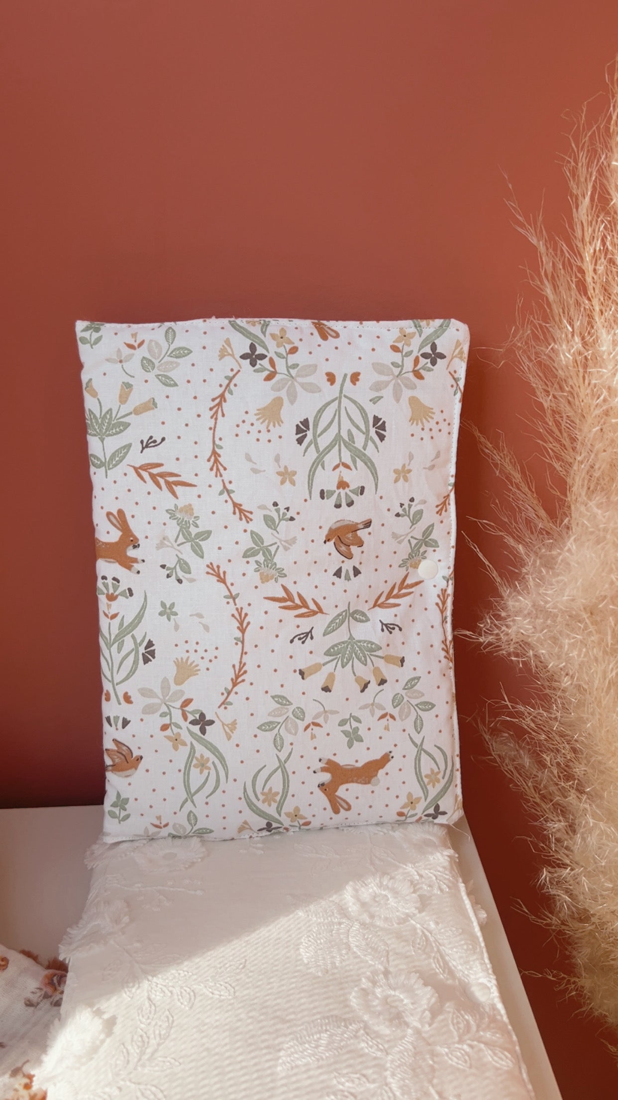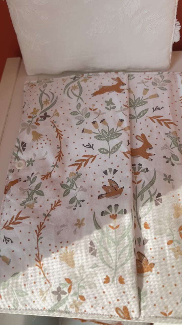 Protège carnet fabriqué à partir d'un tissu en coton imprimé Zekia motifs fleurs et lapins - Oeko-tex.